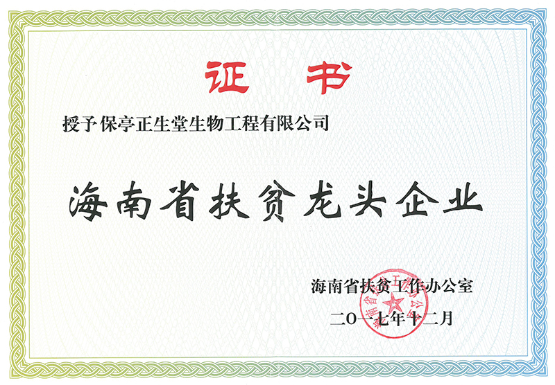 省级扶贫龙头企业证书